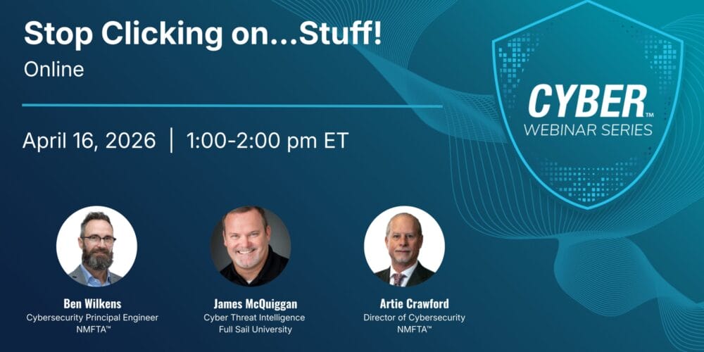 Join us for the next installment in the National Motor Freight Traffic Association’s (NMFTA) cybersecurity webinar series.