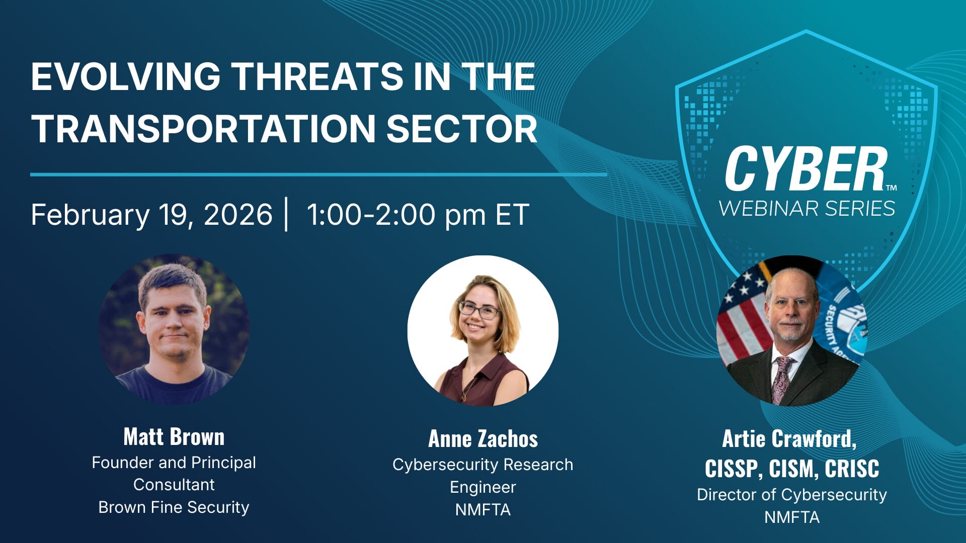 Join us on Thursday, February 19, 2026, at 1:00 pm ET, as Matt Brown and the NMFTA cybersecurity team discuss Evolving Threats in the Transportation Sector.